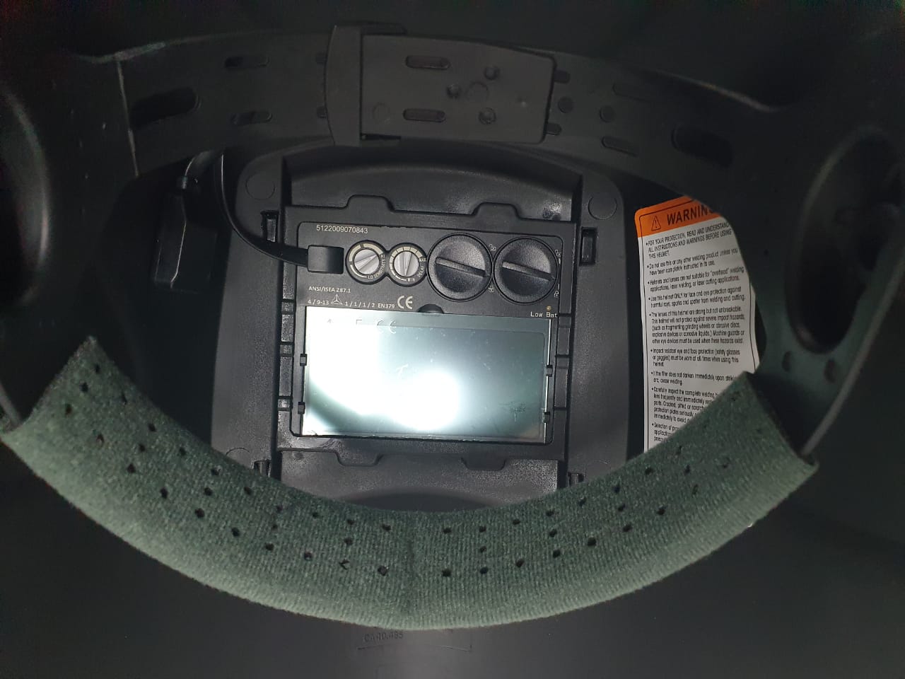 Mascara para soldador Soltec con filtro LCD con auto-oscurecimiento, sensibilidad y tiempo de delay ajustables.